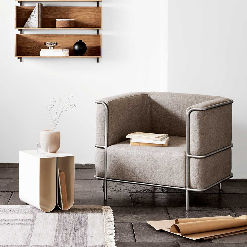 The Curved Side Table combines clean-cut lines with organic curves. It is perfect for storing magazines.