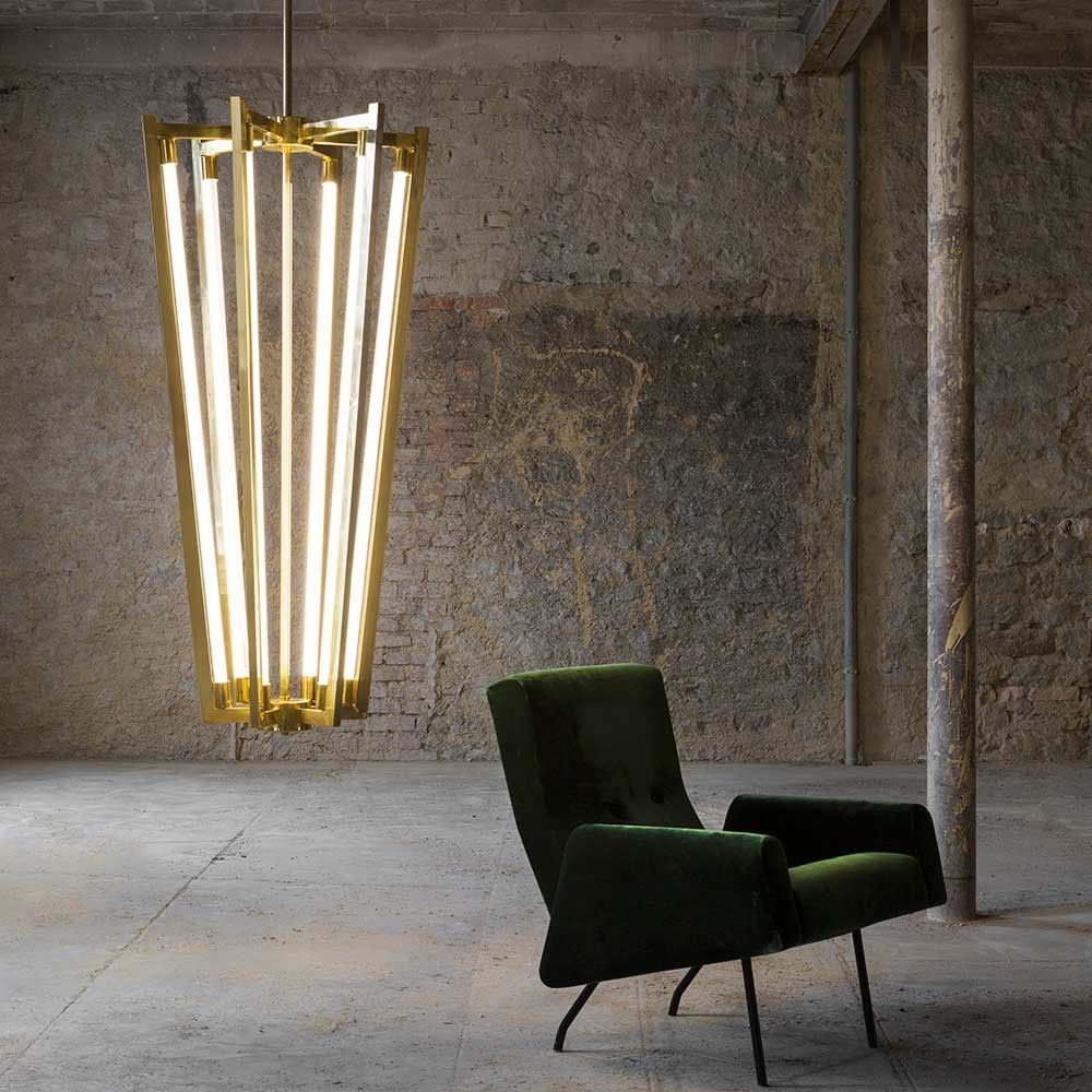 This architectural piece in Art Deco style could tell the story of the cabarets and music halls of the early 20th century. Its spectacular dimensions mean that it can be installed almost anywhere. Ideally suspended 50 cm above the floor, this chandelier could be placed between a sofa and armchair, or simply positioned amongst other furniture as a conversation piece…