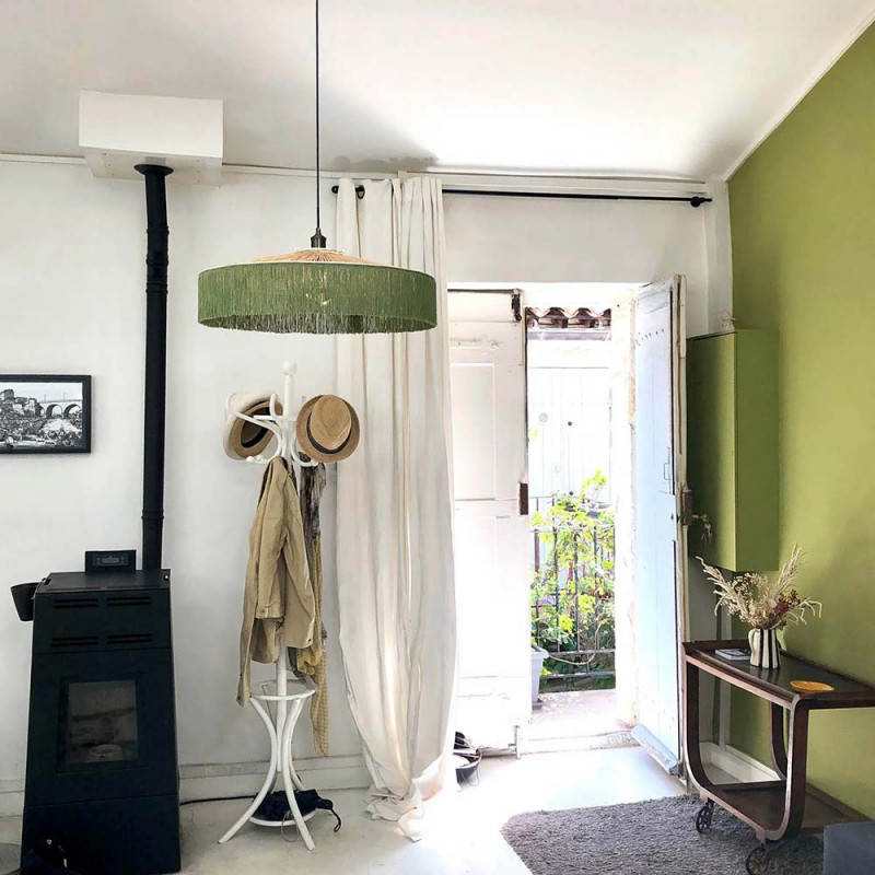 With its raffia weave and colorful fringe, this suspension will give a timeless retro-chic look to your interior.