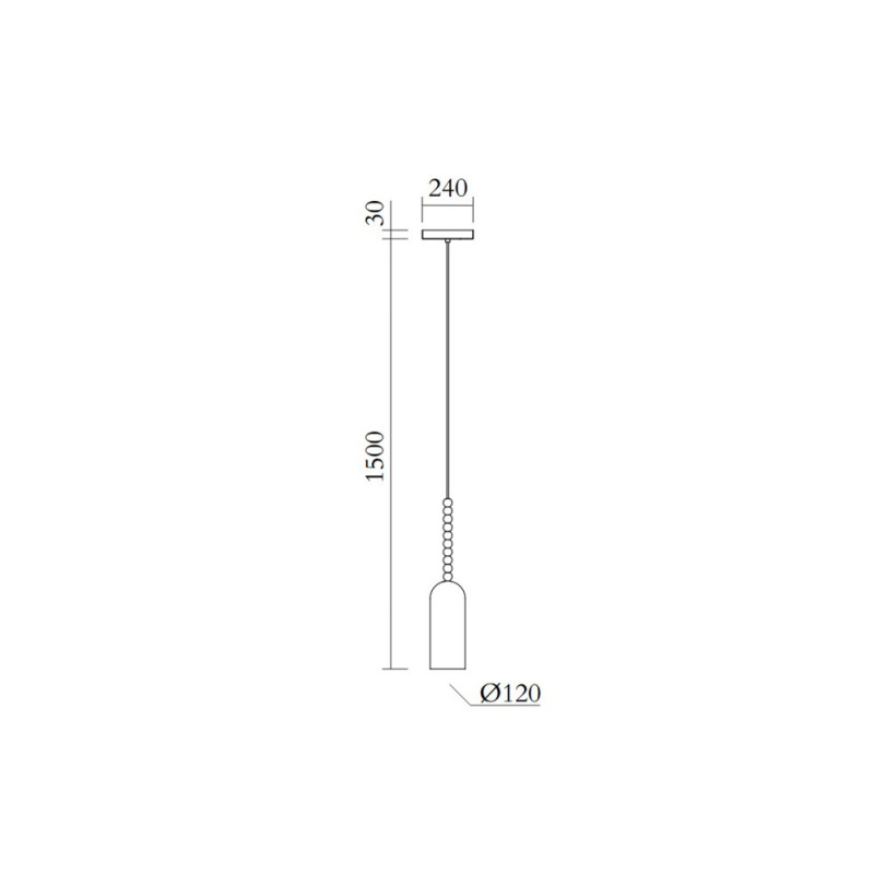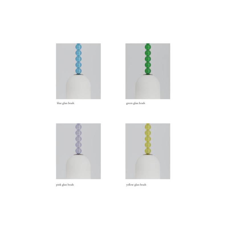 From the precision of the metal ceiling cone to the subtle gradation of the beads, every element reflects the studio’s craftsmanship - a refined dialogue between material, colour, and form.