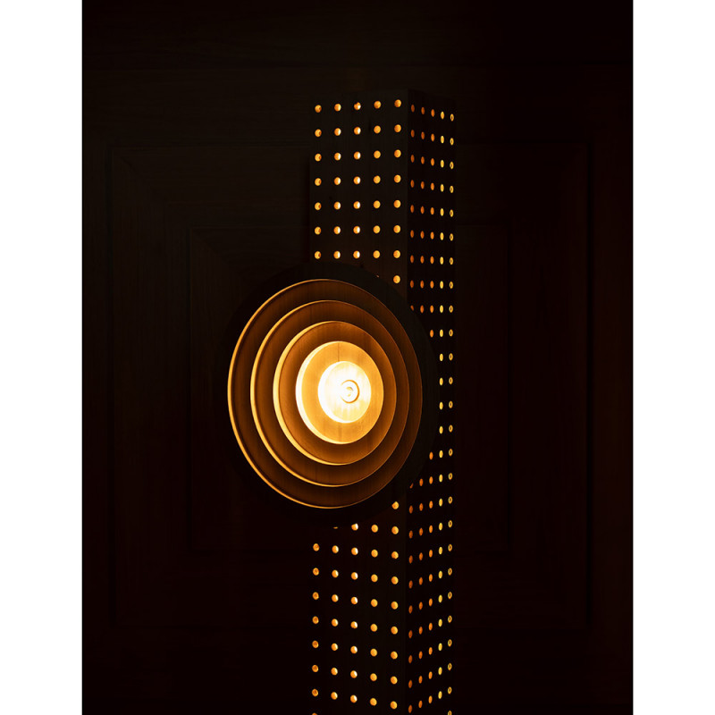 Between sculpture and luminaire, Ototem explores verticality as a ritual: each perforation becomes a point of brilliance, each shadow draws a new relief.