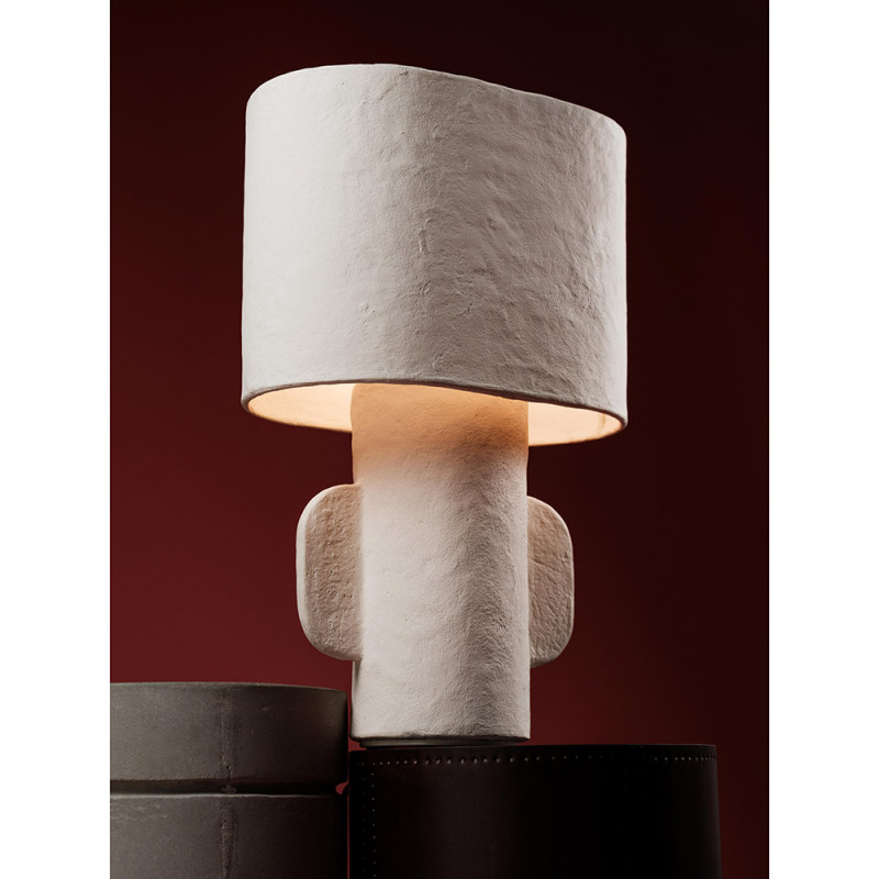 The shape of the lamp is free and organic, the material particularly tactile. The table lamp is aesthetically interesting even when it is not lit.