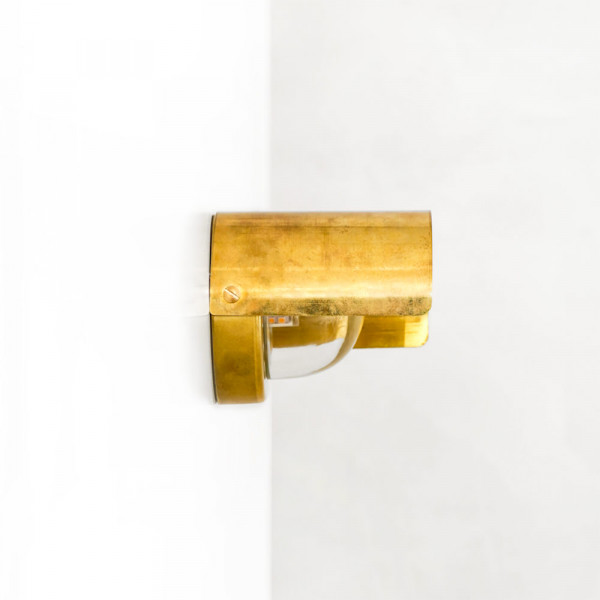 The Alba Monocle wall light, sunrise in Spanish, is made in brass.