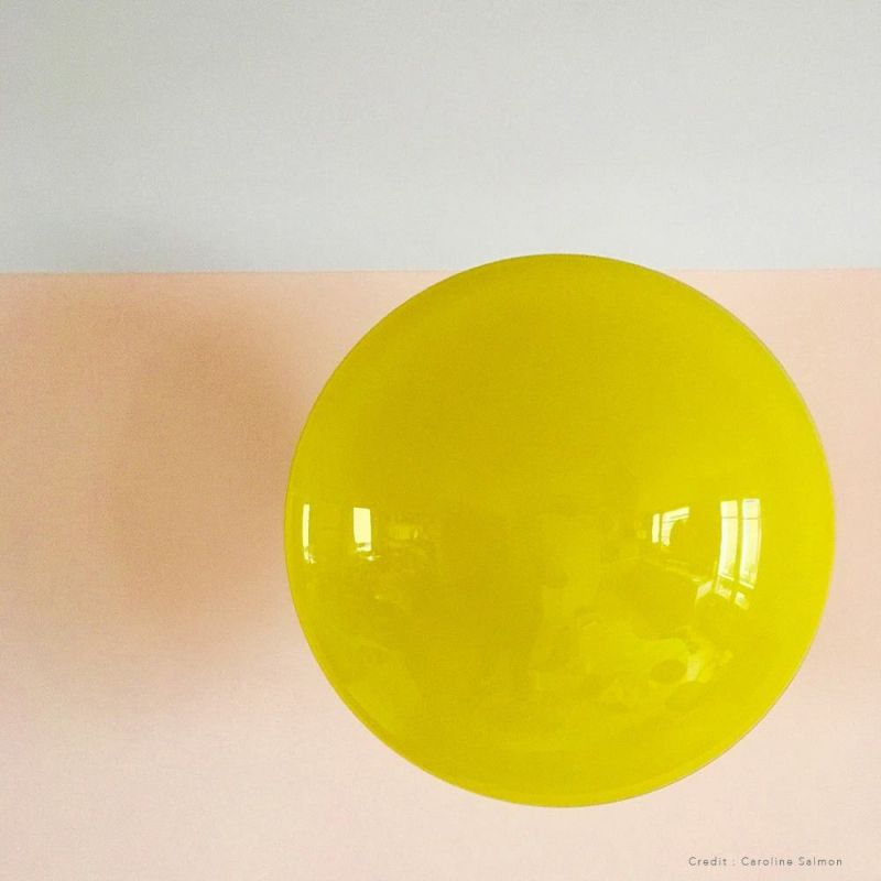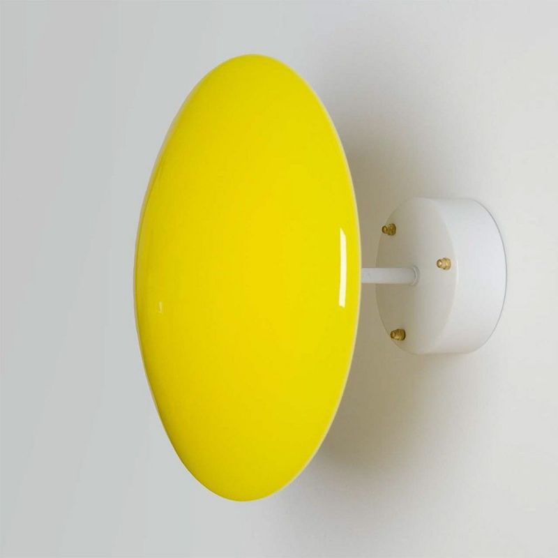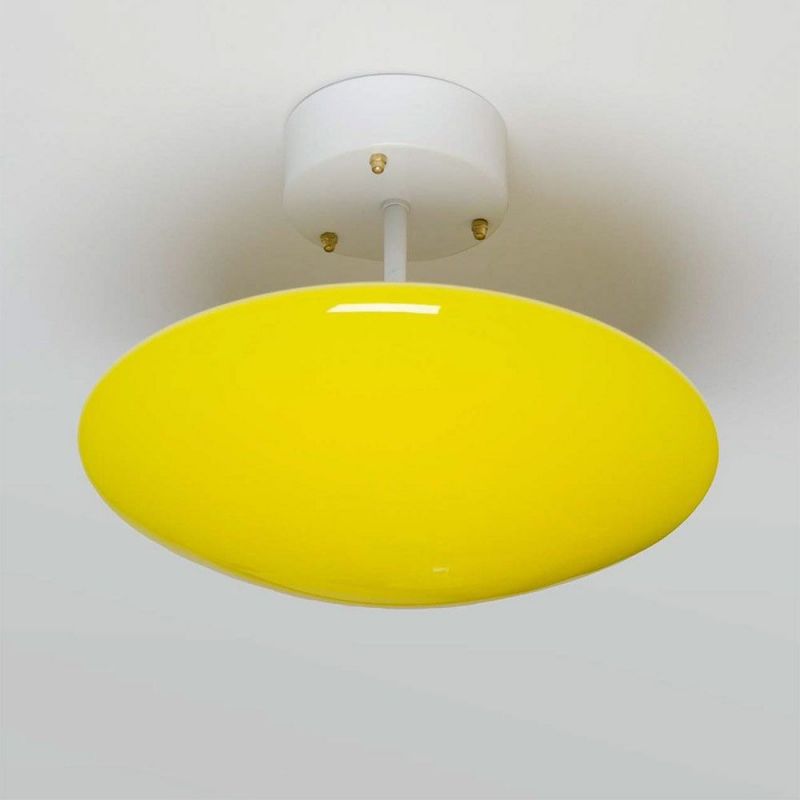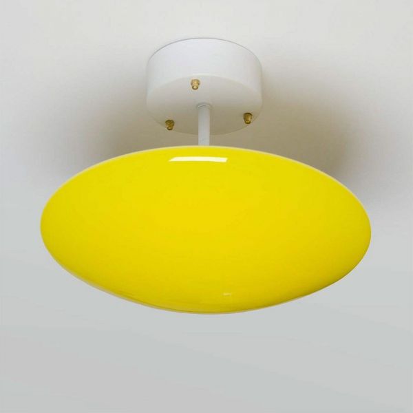 A wall or ceiling light in vibrant yellow hand blown crystal glass and powder coated metal.