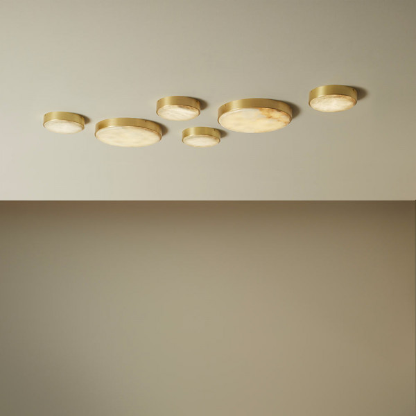 Inspired by the linear plains of the Flemish landscape, the ANVERS collection embodies the low profile of the terrain with its refined silhouette, while creating maximum impact thanks to its exquisite disc of natural alabaster stone. The translucent alabaster disc is encased in solid brass, creating a pure and elegant piece. The natural streaks inside the alabaster produce an individual and distinctive feature.