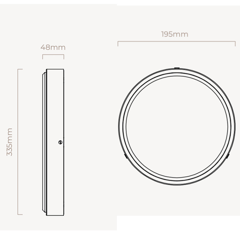 Backplate dimensions: large - ø 33,5 cm x W4 cm | medium - ø 19,5 cm x W4 cm | small - ø 14 cm x W3.5 cm