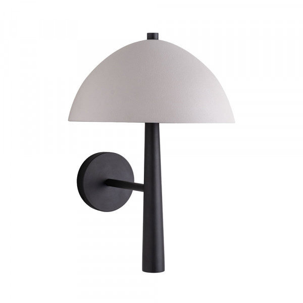 With its white ceramic dome resting on a slender patinated bronze stem, Nico draws a silhouette that feels both graphic and generous. The solid shade softens the light, while the taut line of the support anchors the piece in quiet verticality.