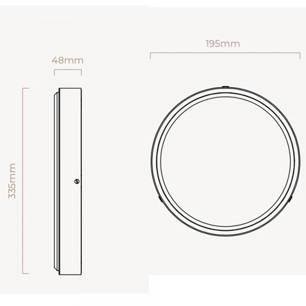 Dimensions backplate : large - ø 33,5 cm x P4 cm | moyen - ø 19,5 cm x P4 cm | petit - ø 14 cm x P3,5 cm