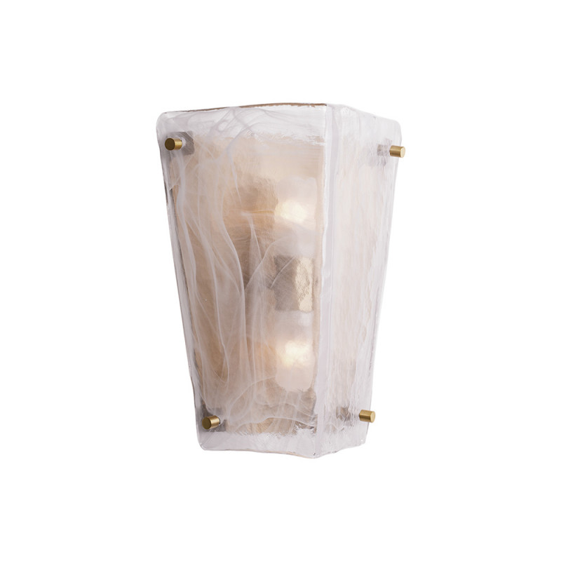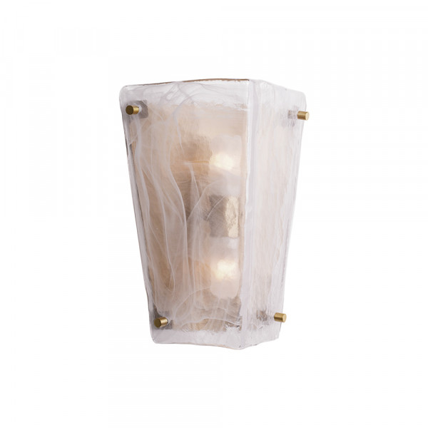 Son diffuseur sculptural en verre thermoformé s’insère dans un élégant support en laiton satiné.