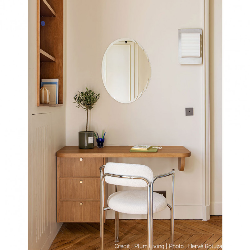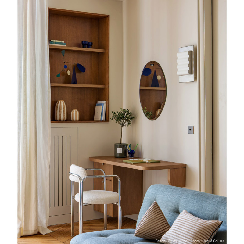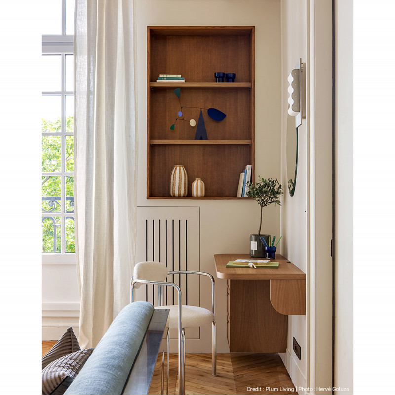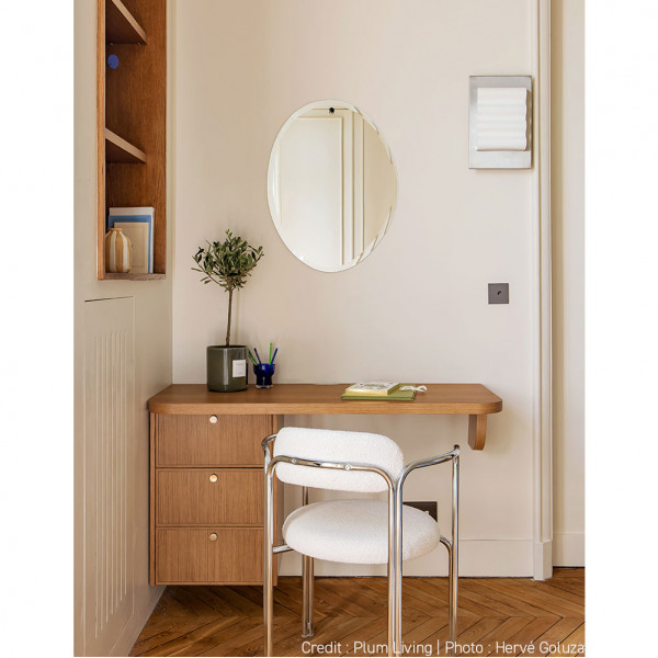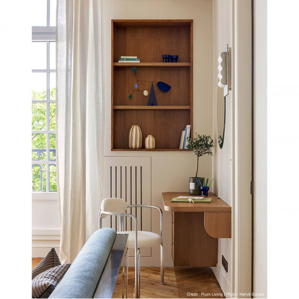 A la fois simple et sculpturale, l'applique Frame est réalisée en aluminium, en acier poli miroir, ou en bois, habillés de papier.