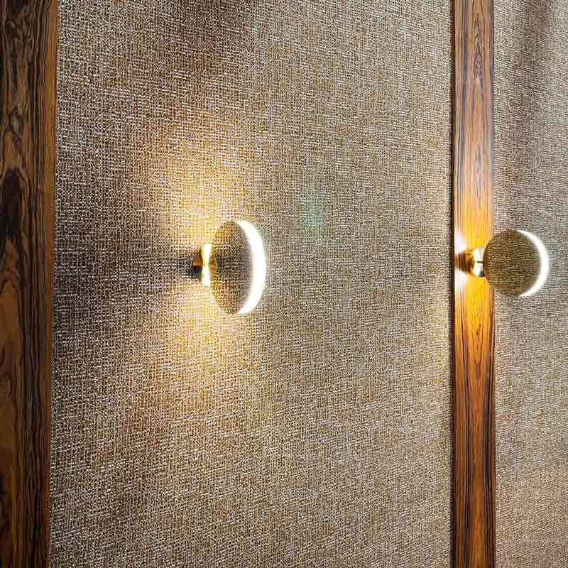 Son effet miroir reflète subtilement l’environnement, créant une illusion de profondeur, tandis qu’une tranche lumineuse diffuse une lumière douce et enveloppante.