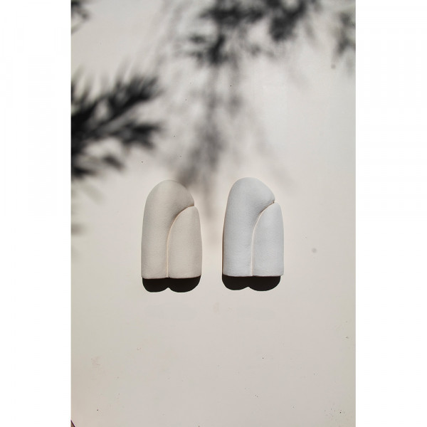 Minutieusement modelée à la main par Alice Lahana dans son Studio, l'applique Sète en grès chamotté est une pièce modulable,dont l’esthétique évolue selon son orientation : fixée vers le haut ou vers le bas, elle diffuse une lumière douce et graphique.