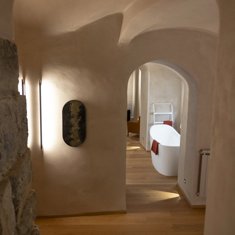 Dessinée par Federica Biasi, les lignes épurées de l'applique Thula apportent une touche d’intrigue architecturale aux murs, comme aux plafonds.