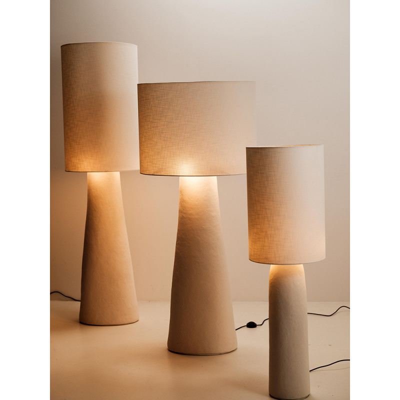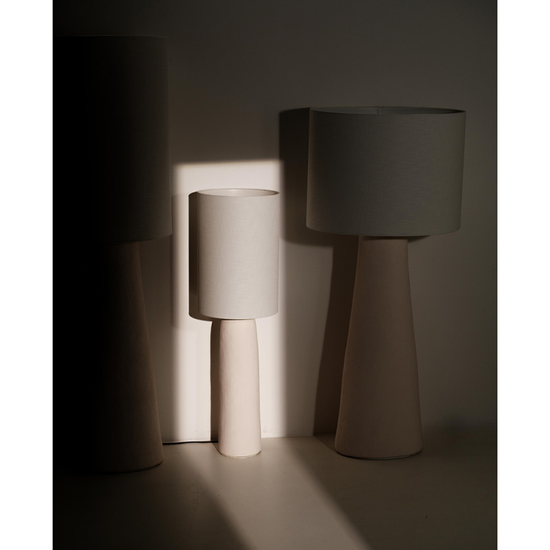 Matière : base en papier mâché | abat-jour en lin naturel.