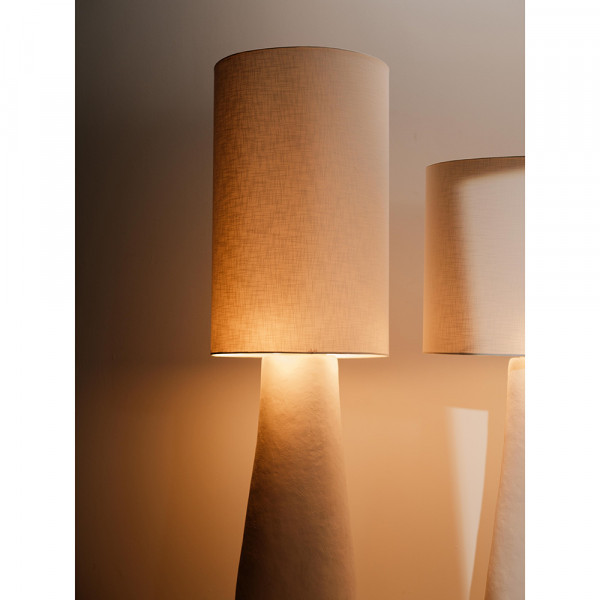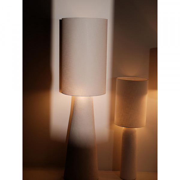 Matière : base en papier mâché | abat-jour en lin naturel.