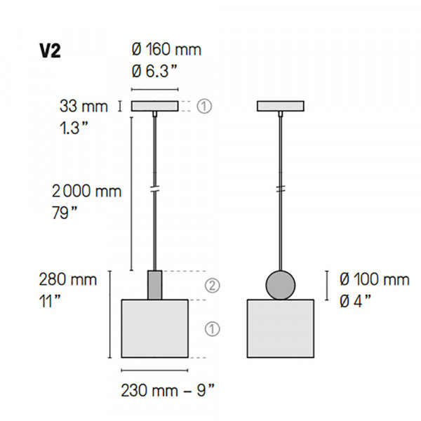 La suspension Calée 2 est livrée avec un diffuseur et une ampoule LED intégrée (840 lumen, blanc chaud, 2700 kelvin). D'autres finitions sont possibles sur demande (nous contacter).