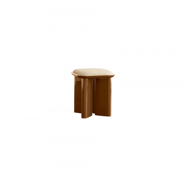Sa silhouette géométrique, adoucie par des arrondis subtils, joue les contrastes entre rigueur et confort. À la fois ponctuation visuelle et assise d’appoint, il habite l’espace et affirme sa présence dans un souffle de douceur.