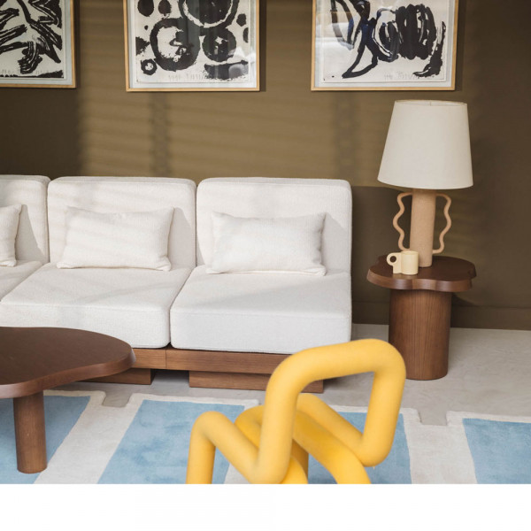 Son plateau aux lignes ondulantes évoque une douceur presque gourmande. Ces formes pleines et organiques invitent au toucher, tandis que la base cylindrique ancre l’ensemble. Véritable ode à la fluidité, la Mahaut est bien plus qu’une table d'appoint : c’est une présence chaleureuse et élégante, capable de transformer un espace.