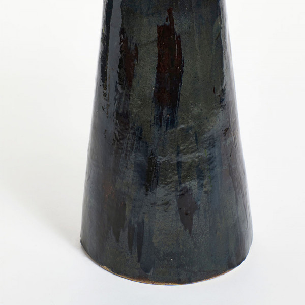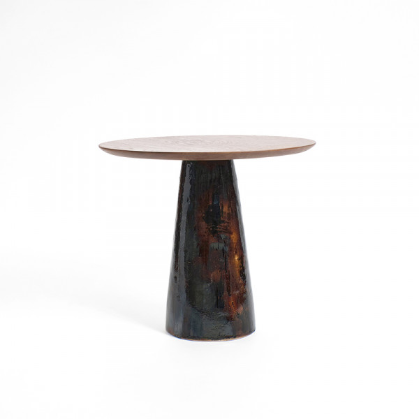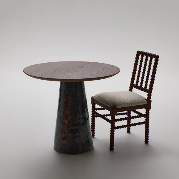 Chaque base est façonnée dans l’atelier de Project 213A, selon un geste libre et instinctif. L’émail, appliqué en couches successives, confère des nuances uniques à chaque pièce : bruns intenses, éclats irisés, texture. Aucune table ne se répète.